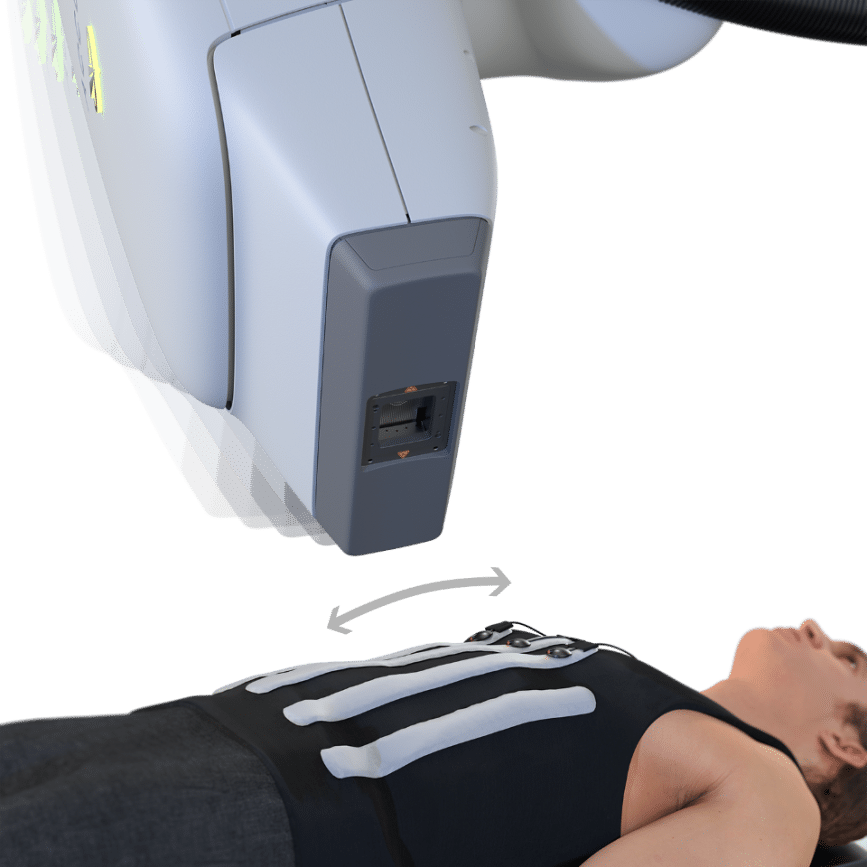 The CyberKnife system utilises real-time x-ray guided motion synchronization technology. This allows tracking of any tumour motion, adjusting the position of the treatment beam in real-time to account for a moving tumour. This reduces the amount of radiation delivered to healthy tissue without compromising the dose delivered, improving patient outcomes. This technology is particularly beneficial for cancers located in the chest and abdomen including lung, liver and pancreas which are particularly susceptible to respiratory motion.