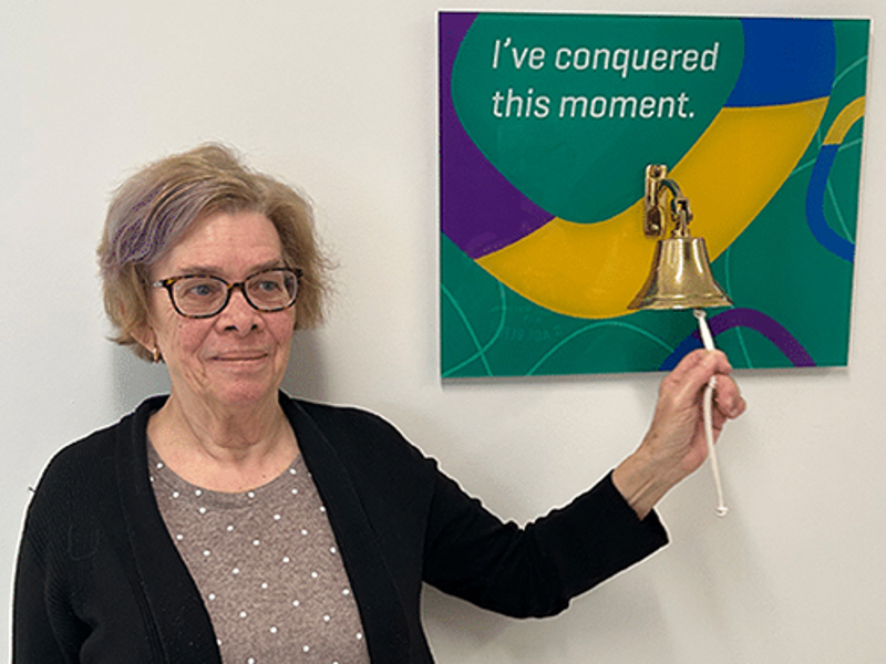 June finished her treatment in July and was able to ring the bell to mark her final radiation therapy session.