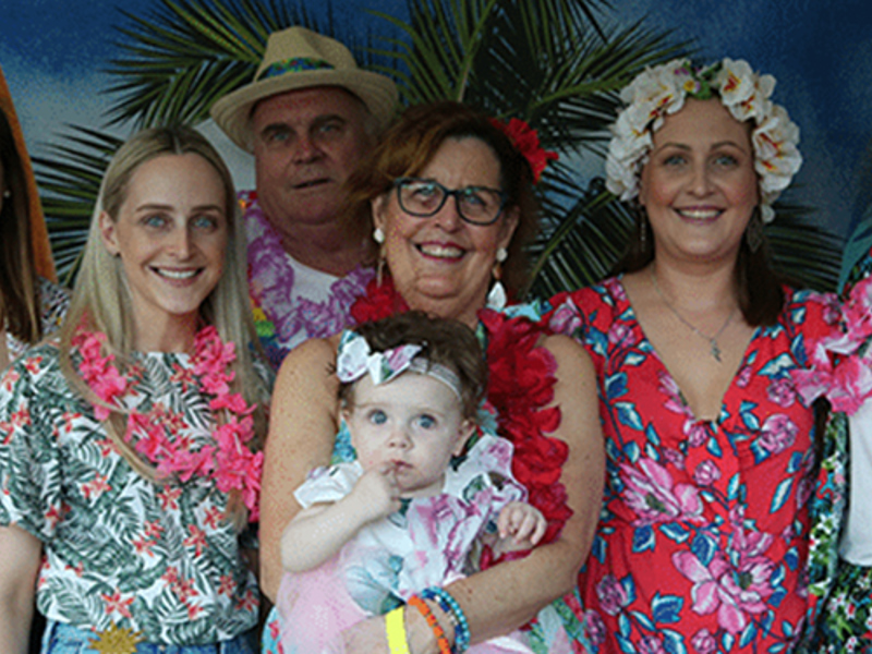 “She saw her GP who sent her for a chest x-ray. The radiologist saw fluid on her lungs and sent her to Greenslopes emergency, where she was admitted and had a chest drain inserted. They did biopsies and referred her to a respiratory physician. I was in hospital at the time having my eldest daughter, mum’s first grandchild. She was three days old when Mum received her diagnosis. Mum didn’t tell any of us about her diagnosis for another three weeks, as she wanted our family to enjoy the new baby. She’d gone into hospital for a video-assisted thoracoscopic procedure, and we knew then that there was something more sinister going on,” says Jemma.