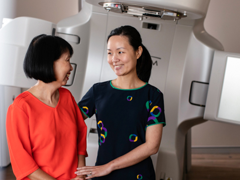 By knowing the precise location of your tumour and tracking any movement, radiotherapy can be delivered more accurately to a smaller treatment area. This means there is less radiation delivered to the surrounding healthy tissue, resulting in fewer side effects.