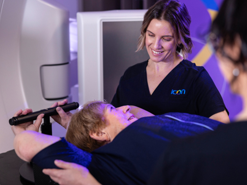 The system is directly linked to the treatment machine (linear accelerator) and only allows the radiation to be delivered when the chest is in the correct position. If it's not, don’t worry, the machine will not turn on unless you are in the correct breath hold. You'll be in control for the duration of the treatment.