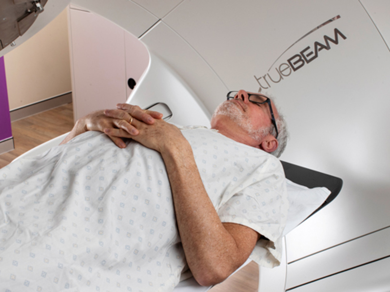 During treatment with VMAT, you lie down on a radiation therapy treatment couch in the treatment position that has been determined by your radiation therapist during radiotherapy treatment planning. The treatment equipment (also known as a linear accelerator) rotates around your body delivering focused beams of radiation to the tumour or disease.
